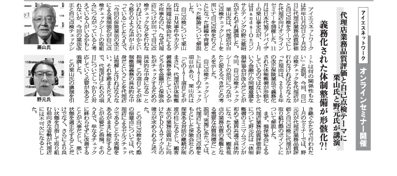 代理店業務品質評価と自己点検テーマに 栗山氏と野元氏が講演